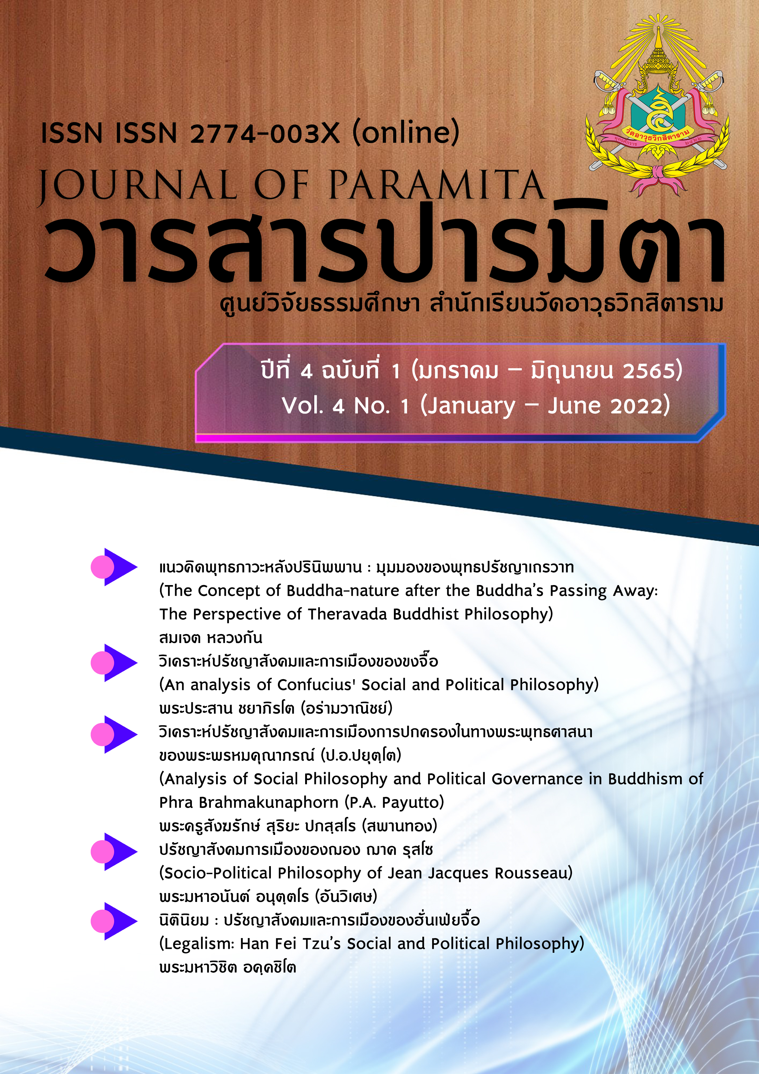 การดำเนินการวารสารปารมิตาในปี พ.ศ. 2565 นี้ นับว่าเป็นปีที่ 4 ทางกองบรรณาธิการได้บริหารจัดการวารสารให้เป็นไปตามเกณฑ์มาตรฐาน TCI เช่นที่เคยจัดทำมาตลอด โดยเฉพาะอย่างยิ่งในปีนี้ได้ให้ความสำคัญเป็นพิเศษกับผู้ทรงคุณวุฒิตรวจประเมินผลงานวิชาการ เพื่อเป็นความเป็นมาตรฐานทางวิชาการทั้งในเชิงคุณภาพและเชิงปริมาณต่อไป